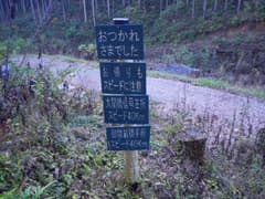 作業道に入って50m程の所に砂利敷きの広場があり、「二股山登山者用無料駐車場」の看板がある。通常はこちらに車を置いた方が良いだろう。