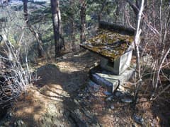 縦走路を赤雪山の方へ辿ると、ほどなく岩場の瘤があり、その上に石祠が祀られている。ここが神楽場だ。桐生山野研究会の「仙人ケ岳周辺の山」の記事によると、晴れた日には天狗が集まって笙を吹き、鼓を打って舞うという言い伝えがあるそうな。石祠には「中沢家 大正拾三年七月吉日」と刻まれている。