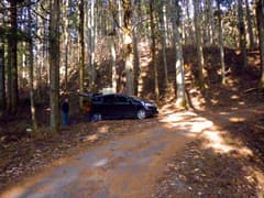桐生を車で出発。R50を走って、箕郷町から榛名湖南岸・七曲峠に通じる県道榛名山箕郷線を上がる。山間に入り、県道から右に分岐する前の沢林道に入る。林道入口はA型バリケードで塞がれているが、ちょいと脇にどかして車を入れ、すぐ先の林道脇のスペースに車を置く。今日は快晴で比較的暖かい日だが、杉林の日陰はさすがに空気がキンと冷たい。フリースを着て出発する。