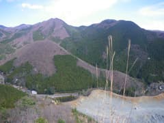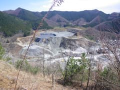 桐生を車で出発。小平方面に向かって県道を北上し、396m三角点峰南面の巨大な水圧鉄管(落差約100m)の下を通って、キンケン石産の看板で左折。枝道に入って、採石場入口脇のスペースに車を置く。この採石場では、輝緑凝灰岩を採取しているらしい。大型ダンプの往来が多く、とても埃っぽい。鍾乳洞公園の無料駐車場からでも大した距離はないので、あっちに駐車した方が良かった。
