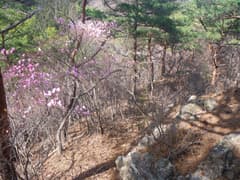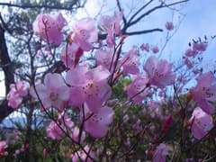 500m峰から稜線を下って行くとしばらく岩場が続き、そこかしこにアカヤシオが咲いている。予期せず今シーズン初のアカヤシオを見て、思わずにまにまする。花付きが良く、つぼみも多い。今日は平地では桜が満開で見事だったが、アカヤシオもなかなか。この春は桜もアカヤシオの当たり年の気がする。