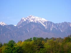 桐生を未明の3時に車で出発。中部横断道・佐久南ICで高速を降り、八ヶ岳東麓をR141で南下する。山梨県に入って八ヶ岳南麓の田園地帯を下って行くと、行く手に残雪を戴く甲斐駒が高く聳える。素晴らしい山岳景観だ。