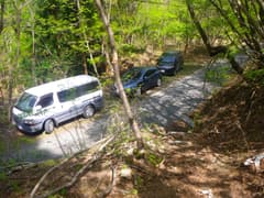 ホクギノ平を通過し、標高が下がるに連れてだんだんと濃くなる新緑を愛でながら歩く。登山口に戻ると、駐車は3台に増えていた(先に帰った人がいるので、最大4台)。