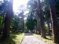 登山はこれで無事終了だが、折角なので石尊神社にも立ち寄ろう。参道入口までは歩いても僅かな距離。そこから石鳥居を潜って、幅広い石畳の参道に入る。アカマツの大木の並木があり、説明板によると樹高約30m、樹齢250〜300年で市指定天然記念物らしい。