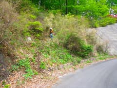 気になるスポットの訪問を終え、あとは車道をてれてれと下る。季節柄、車道の脇には某山菜の出た様子があるが、ことごとく採取された後だった。残念。
