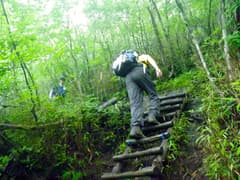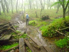 下山は往路を戻る。艫岩付近で再び大人数の団体と交差。標高が下がるに連れて陽射しが戻り、やはり蒸し暑い。内山峠の駐車場には観光バスが停まっていた。人気の山やね。しかし、見所と変化に富んでいるので、この人気も納得である(200名山でもあるし)。