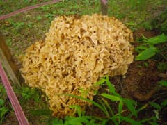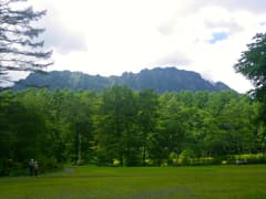 戸隠神社中社を過ぎ、戸隠森林植物園の駐車場に車を停める。こちらは無料な上に車が少ない。植物園に入った所の中央広場からは、ギザギザの稜線を連ねる戸隠連峰が真正面に眺められる。素晴らしい。森林学習館の脇には初めて見る様なでっかいマイタケが出ていた。囲いでキープされているようなので、あとで植物園のスタッフが食べるのかな。
