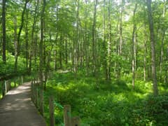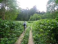植物園を横断して、戸隠神社奥社参道の入口に向かう。森林の中に平坦な木道が通じており、フィトンチッドを浴びながら散歩を楽しむ。
