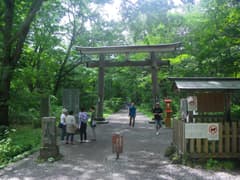 参道入口に着き、ここから奥社に詣でることにする。私は戸隠山に登ったときに奥社に参拝しているが、S&Sは初めてである。平日にも関わらず、参道には観光客が多い。
