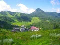 志賀高原の熊の湯・硯川に向かい、前山サマーリフト下の駐車場に車を置く。リフト(往復460円)に乗り、楽して前山に登る。草原が広がる前山頂上は360度の好展望。横手山や笠ヶ岳を眺め、熊の湯を俯瞰する。白い雲を浮かべて澄んだ青空が広がり、爽やかな風が吹いて秋の気配を感じさせる。