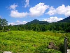 温泉旅行2日目は天気良し。志賀高原に上がって、四十八池と志賀山を周回するハイキングコースを歩くことにする。