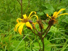 鞍部から笹原の中を急登する。いろいろな花が咲いていて目を楽しませる。展望も開けて、快適な登りだ。
