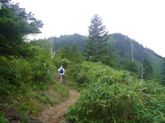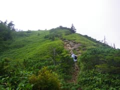 裏志賀山の肩に着き、ここでS&Sには待って貰って、一人で裏志賀山の頂上に往復する。ほぼ平坦な稜線を辿る。