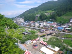 今夜の宿泊地の渋温泉は、信州中野ICから志賀高原方面へ行き、途中で左に入った夜間瀬川支流横湯川に沿ってある。車が一方通行の狭い石畳道の両側に温泉旅館が軒を連ね、昔ながらの温泉街の風情が残る。