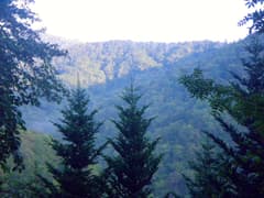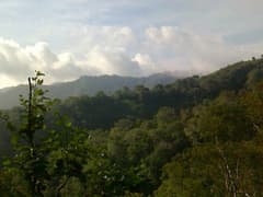 登山道に入り、緩く登って尾根の上に出る。樹林に覆われて展望はないが、所々の木の切れ間から周囲の深い森林に覆われた山々が眺められる。登山道は尾根上をゆるゆると登って行く。良く踏まれており、道標もあって整備された道だ。