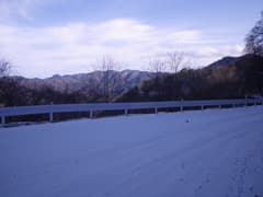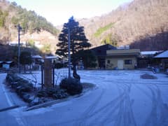 桐生を車で発ち、下仁田ICから上野村に向かう。湯の沢トンネルを抜けたとたん、路面一面にうっすらと雪が積もっていて驚く。ノーマルタイヤなので、おっかなびっくり慎重に砥根平への下り坂を走る。これは、昨日のうちにスタッドレスに履き替えておくんだったなあ。砥根平からしおじの湯への道も雪に薄く覆われて、カーブとアップダウンが多くて注意を要す。辿り着いたしおじの湯の駐車場も一面の雪。隅っこに車を置く。車外に出ると、空気がキンと冷えて吐く息が白い。毛糸の手袋をはめて出発する。