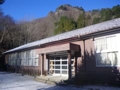 「三岐(みつまた)学生の家 50m→」の道標に従って、しおじの湯を見下ろす尾根末端の高台に登ると、廃校となった校舎を利用した学生の家がある。後日調べると、昭和48年に廃止された上野西小学校三岐分校の校舎だそうだ。校舎左手の林間には寂れた小さなお堂があり、中に小さな石仏がおわす。説明板によると、山中領西国三十三札所写しの第一番札所として建立されたもので、如意輪観世音を祀るとのこと。