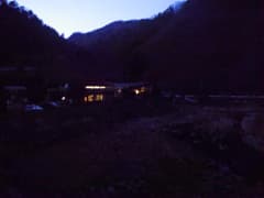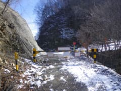 もう一生分くらいの長いトンネル歩きを経て、日が落ちて灯りがともるしおじの湯に到着。下山ルートで大回りした結果、全行程の3/4が車道歩きという、何とも微妙な山歩きだった。しかし、神流川源流域の様子はかなり把握できた気がするし、最後に温泉に入って温まれば目的達成で大満足。帰りは幸い路上の雪は消えている。夜道を走って帰桐した。