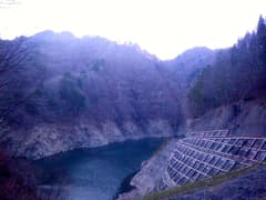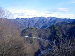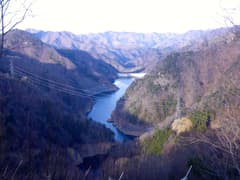 林道を左(東)に辿って、奥神流湖側へ下る。山腹を巻いて緩々と下る林道歩きは長いが、先月登った上武国境稜線の山々を眺めたり、奥神流湖を見おろしたりして、展望はなかなか良い。途中で子連れを含む20頭くらいのサルの群れを見た。写真を撮ろうと試みるも、一斉に林の中に逃げ込んでしまい叶わず。それにしてもこの山域は獣が多い。