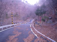 延々と山腹をトラバースし、ゲートを通って、ようやく神流川本谷沿いの車道(御巣鷹の尾根登山道路)に下り着く。長い車道歩きで足裏に肉刺ができて痛い。しかし、しおじの湯へはここが折り返し点で、先はまだまだ長い。