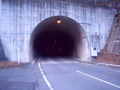 奥神流湖の上流端で神流川発電所の開閉所を対岸に見る。琴音トンネルに入り、以降、湖岸の山襞を貫いて長いトンネルが連続する。トンネル内は、照明が間引いて点灯されていて、暗い。ひと気のないトンネルを一人で歩いていると、不気味で何か出そう。足音がピタンピタンと壁に反響する。振り返ったら誰かいたりして(^^;)