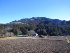 山麓の緩斜面を下り、ゲートを通って畑地に出る。谷間の奥に、薙に雪を抱く男体山頂上を仰ぐが、集落の中に下りて行くと見えなくなり、駐車地点の東小来川公民館に到着する。山中で一人のハイカーさんにも会わず、静かな山歩きだった。