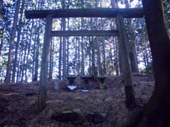 さらに5分程登ると木の古い鳥居を潜り、3基の石祠が並ぶ風雨雷山に登り着く。石祠はいずれも平入り切妻造り。左と真ん中の二つは比較的新しく、「宮小来川一同建立 昭和三十一年旧九月十五日」の銘がある。右はちょっと古く、「明治廿七年旧三月廿四日」と刻まれている。それぞれが何の神様を祀っているのかは、残念ながら記されていない。