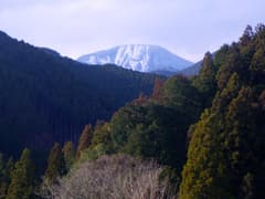 ここから登山口の宮小来川までは約2.6km、徒歩30分の距離なので、今回は車道を歩く。左手にどっしりとした山容の鶏鳴山を仰ぎながら、僅かに下り坂の道をのんびり歩くが、日陰では路面が凍っているところがあるから、油断していると滑って転びそうになる。