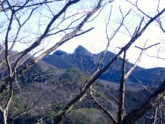 木の間越しに三峰山を振り返る