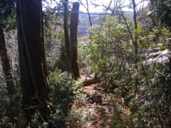 杉林内の踏み跡を登る