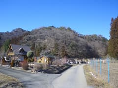 ここはもう尾根の末端で、木立を透かしてすぐ下に山麓の集落が見える。明るい雑木林の中の細い山道をジグザグに急降下すると、防獣電柵に囲まれた畑地に下り着く。この下降尾根は歩き易くて大正解だった。畑地を回り込んで、モダンな民家の脇を抜けると、山麓沿いの車道に出る。あとは車道をのんびり歩いて、駐車地点に戻るだけである。