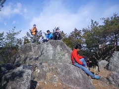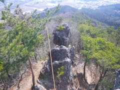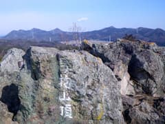 頂上の南には微妙なバランスで立つ大岩があり、一説ではこれが山名の由来とか。また頂上直下には石祠がある。想いが叶う縁結びの社としてお参りされているそうな。