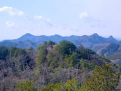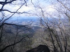 小尾根に上がり、尾根を辿って緩く登る。ところどころに岩場があり、山麓や古賀志山が眺められる。途中、空身で歩いているご夫婦と行き合い、気持ち良い道ですねー、と挨拶を交わす。