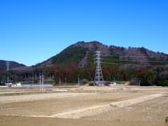 やがて、送電線の下の樹林が帯状に切り開かれた場所を緩く登る。枯れた草藪の中に石祠がポツンとある。この辺りにはあちこちに石切場の跡があり、岩屑が散乱している。