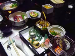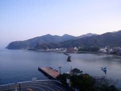 来た道で車に戻り、戸田に降りて土肥に向かう。今回の宿は土肥温泉の海花亭いずみ。客室や露天風呂から、道路を隔てて目の前に駿河湾が眺められる。夕食には活き鮑が出た。グネグネ動く鮑を金網にのせてワイルドに焼く。ちょっと残酷な気もするが、歯応えはコリコリで最高に美味しかった。