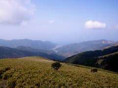 二日目は、仁科峠から猫越(ねっこ)岳を往復することにする。宿から車で出発。土肥から海沿いに南下し、宇久須から県道仁科峠宇久須線を経て、海抜897mの仁科峠まで一気に登る。峠の一帯は笹原と放牧場で、広闊な展望が開ける。今日は良く晴れて、ゆったりした気分になる。