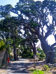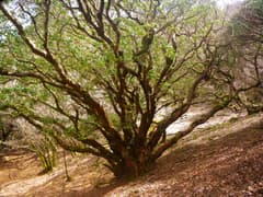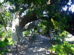大瀬神社の鳥居を潜り、社務所で拝観料100円を納めて先に進む。付近一帯はビャクシン樹林に覆われ、中には樹齢千年を超えるものもあるとか。盆栽のような枝振りや幹肌が見事。国の天然記念物に指定されている。