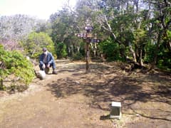 猫越岳頂上は池からすぐである。アセビ林が開けた小広い平地に三角点標石がある。樹林に囲まれて展望はないが、雰囲気は明るい。