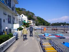 大瀬崎の駐車場(有料)に車を置き、岬の先端まで行ってみることにする。大瀬は海水浴やダイビングで有名で、マリンサービスの店が浜辺に軒を連ね、多数のボンベが並べて置かれている。まだシーズンに入っていないのか、今日は人は少ない。