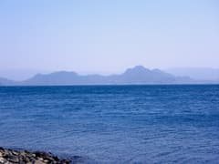 浜辺からは駿河湾を隔てて沼津アルプスや愛鷹山の山影を望む。沼津アルプスは最高峰の鷲頭山でも標高392mの低山だが、稜線はギザギザで面白そうである。今日も残念ながら富士山は見えない。