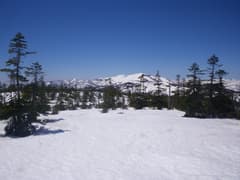 傾斜が緩くなると、一面の雪原となった田代原に出る。ここまでは、大行山に登った際、来たことがある。田代原も中央部は雪が割れ始めている。雪が消えて湿原になった時期にも来てみようかな。