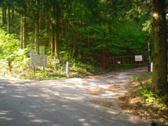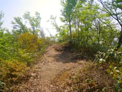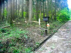 縄文の里のすぐ先で分岐する林道沼田線に入る。林道入口にはゲートがあり、登山者の車は縄文の里の駐車場に置くようにとの指示の看板がある。未舗装の林道を500m程進むと鷲ヶ巣山登山口の標識があり、杉林の中に登山道が通じている。