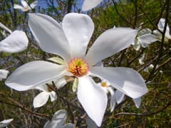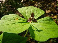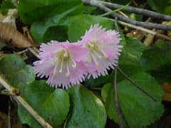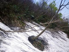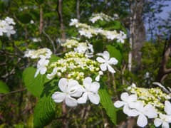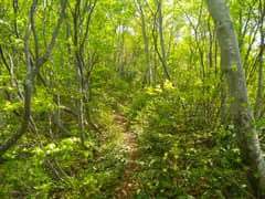 ところどころロープの張られた急坂を登る。ようやく傾斜が緩むと丈が低く明るい樹林帯となり、オオカメノキやイワウチワ、タムシバの花が多くなる。