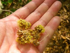 登山道は沢から離れるとブナ林に覆われた小尾根の上に出て、一直線に急登する。道の上には、沢山のブナの雄花が敷き詰めたように落ちている。この様子だと今年はブナが豊作の年に当たり、秋には実が大量に成って森の動物達が大喜びとなりそうである(^^)