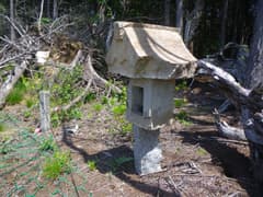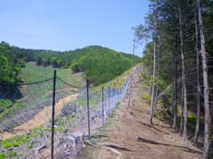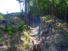 しかし、ここでひとつ問題に気が付く。この防獣ネットの出入口は一箇所だけで、つまり袋小路。新品・厳重なので、抜けられるような穴もない。ネットを攀じ登って越えることは御法度だろう。峠道の痕跡を辿っても、ネットの包囲から出られないのであ〜る。とほほ。仕方なく侵入した箇所に戻って退出する。