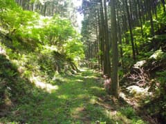 あとは林道を歩いて駐車地点に戻る。入山林道を下る途中、道端に「御即位記念 大正四年三月 名草中」と刻まれた石碑がある。大正天皇の即位を記念する碑のようだが、何故、人の訪れも少ないこんな山奥に建てたのか。多分、当時は往来が盛んだったのだろう。
