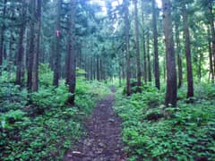 大源太山には一度登ったことがある。前回はここから大源太山のみを往復したが、今日は七ッ小屋山まで行き、シシゴヤノ頭を経て周回する計画である。登山口から杉植林の中に通じる登山道に入る。昨夜は雨が降ったのか、道端の草葉はしずくが付いて濡れている。
