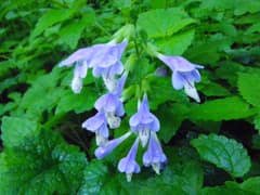 ちょっと休憩してミニドーナッツを腹に入れたのち、七ッ小屋山へ向かう。頂上から岩稜を下り始めると、左(東)側は絶壁となって切れ落ちている。覗き込むとクラクラ目眩を感じる。新しい鎖の架かる岩場は問題なし。その次の岩場は途中までしかロープがなく、下部は左脇の樹木を頼りに下る。ここは足場が悪く、ちょっと緊張させられる。あとは難場はない。登山道の脇にシラネアオイが咲いているのを見つける。予期していなかったので、これは嬉しい。
