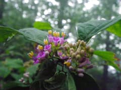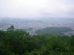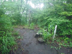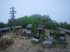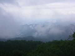 通常の休日はハイカーさんで賑わう鳴神山頂上も、この天気のせいか、今日は4人グループが居るだけ。ここに来るのも久し振りだが、石祠を取り囲んでベンチが設置されており、これは休憩に便利。お茶を飲んでパンを腹に入れる。1ℓペットボトルはあと2口分位しか残っていない。頂上の温度計によると気温15℃で、涼しくてこの水分消費量だから、この時期は2ℓは携行した方が良かった。ガスに包まれて展望は全くないが、そろそろ帰ろうかなと思う頃に南方の雲が切れて、関東平野をちょっとだけ眺めることができた。