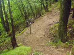 花台沢の頭までは緩やかな登りが続き、そこからアップダウンの多い縦走路となる。鳴神山まで1時間が長く感じる。かなりへろへろになって肩の広場に到着。短い急坂を上って、鳴神山の頂上に着く。いやー、疲れた。